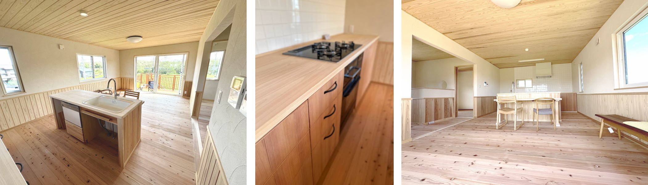 キッチンはオーダー家具で彩られ、とってもかわいい無垢のキッチンで、毎日の料理が楽しくなりそうです。