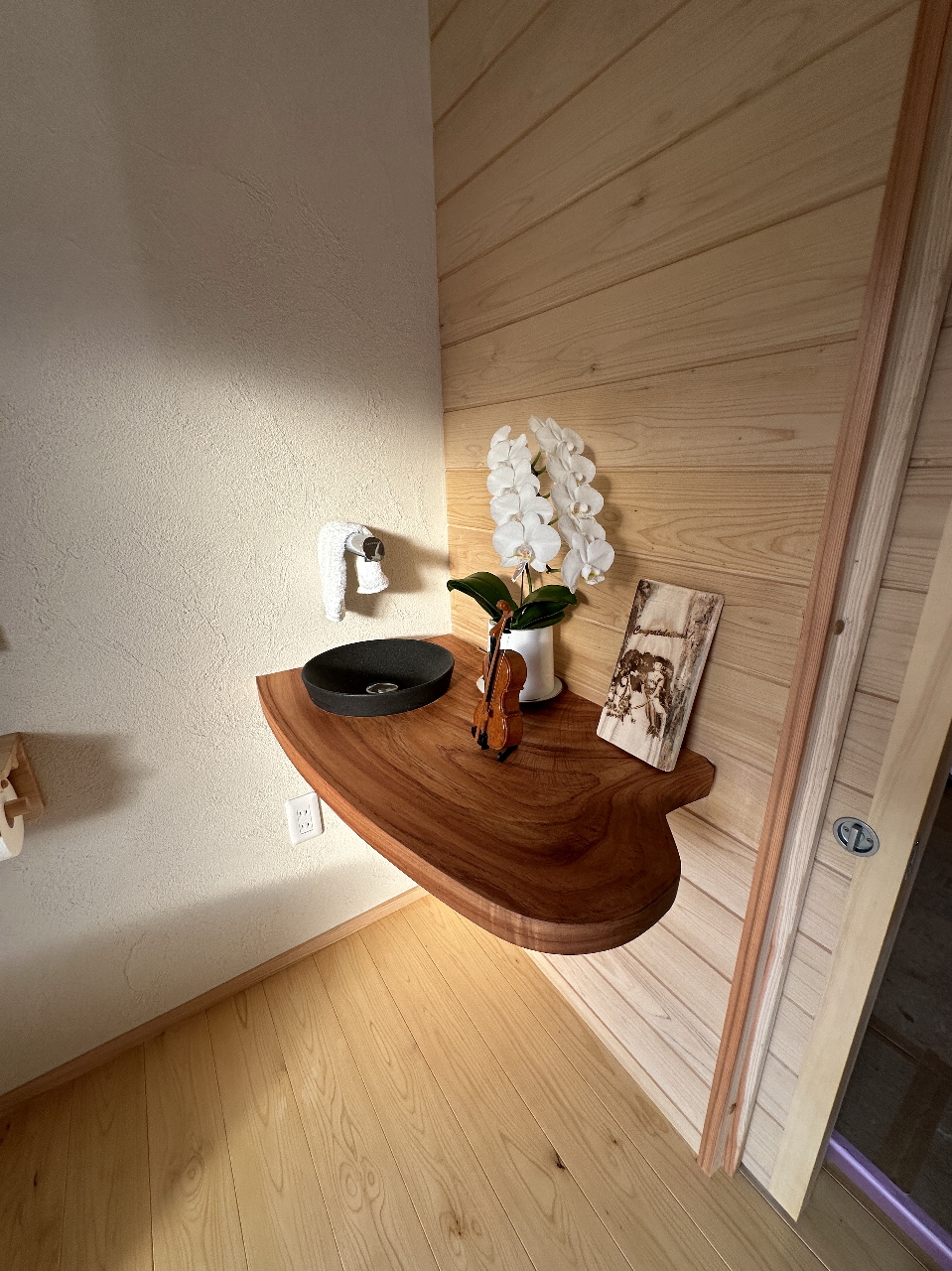 株式会社山儀製材所さんから提供された能登ヒバを使用することで、復興支援に貢献できるだけでなく、実際にリフォームされたお客様にも大変喜ばれております。このリフォームを通じて、全国の皆様にも、能登ヒバの素晴らしさを実感していただければと思います。まだまだ復興への道のりは続きますが、一日も早い復興を心よりお祈り申し上げます。