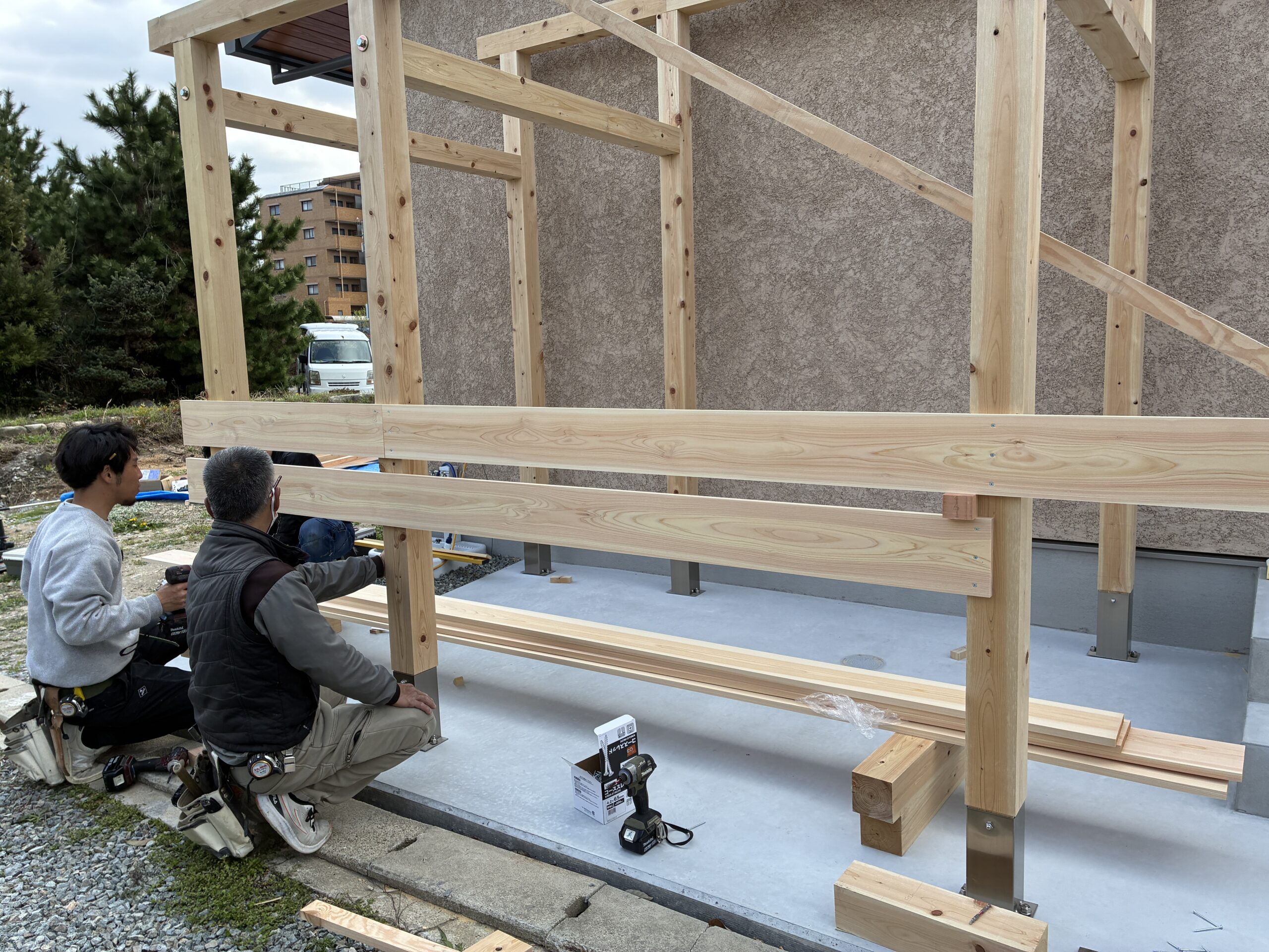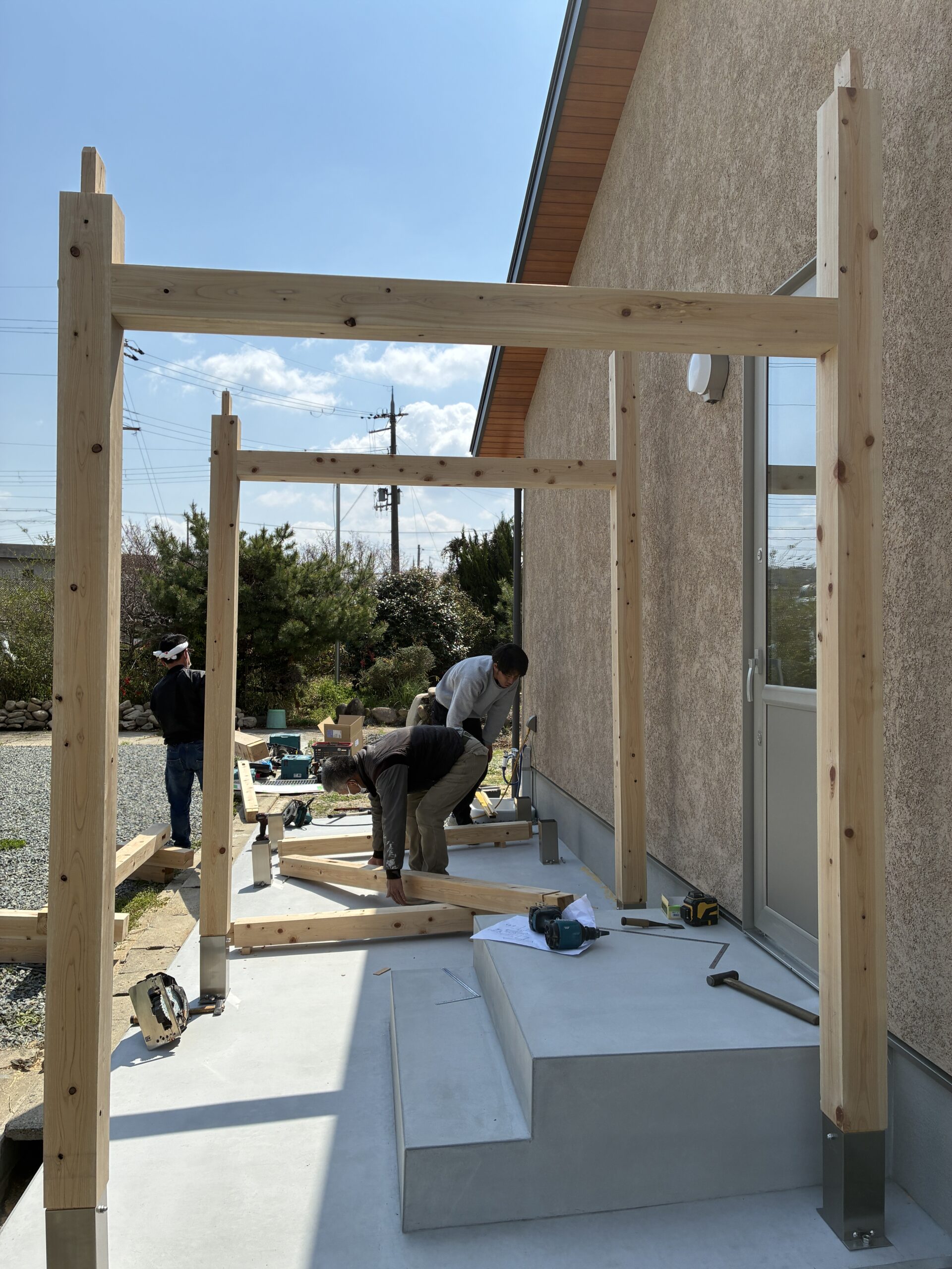 - 庇廊下ができあがりました