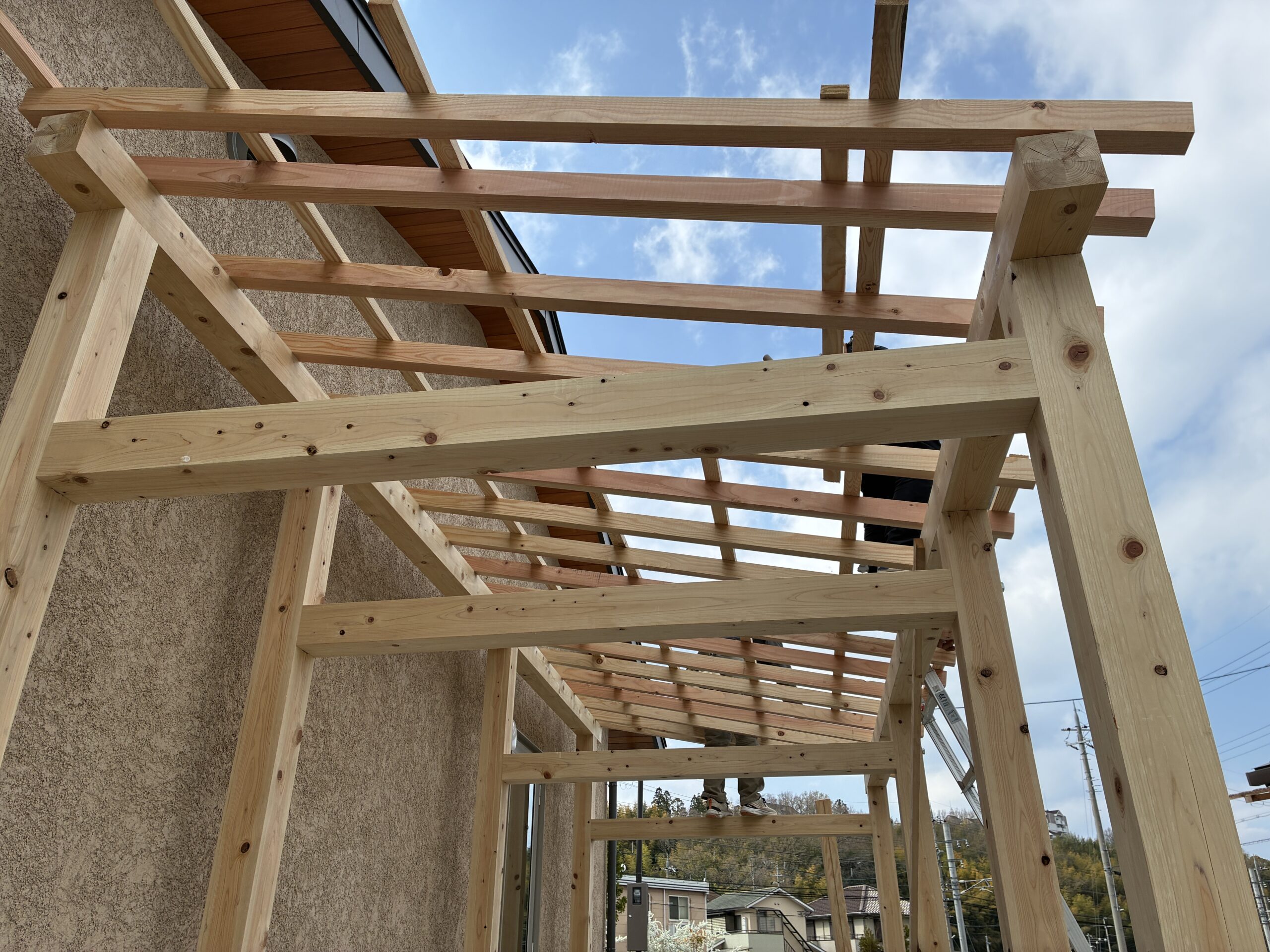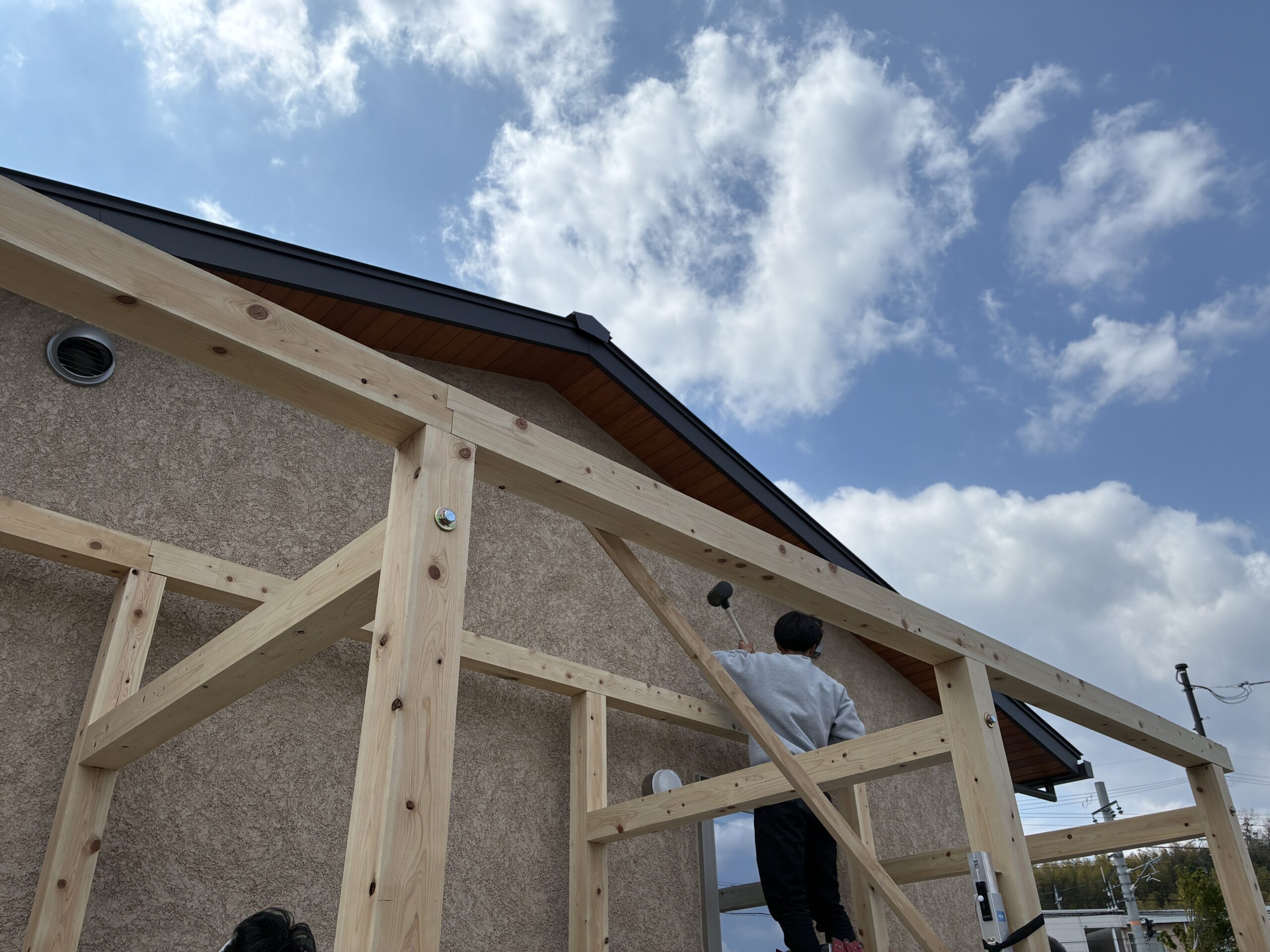 - 垂木ががかかりほぼ完成
