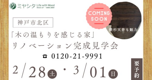 神戸市北区|「木の温もりを感じる家」リノベーション完成見学会【2/28・3/1】